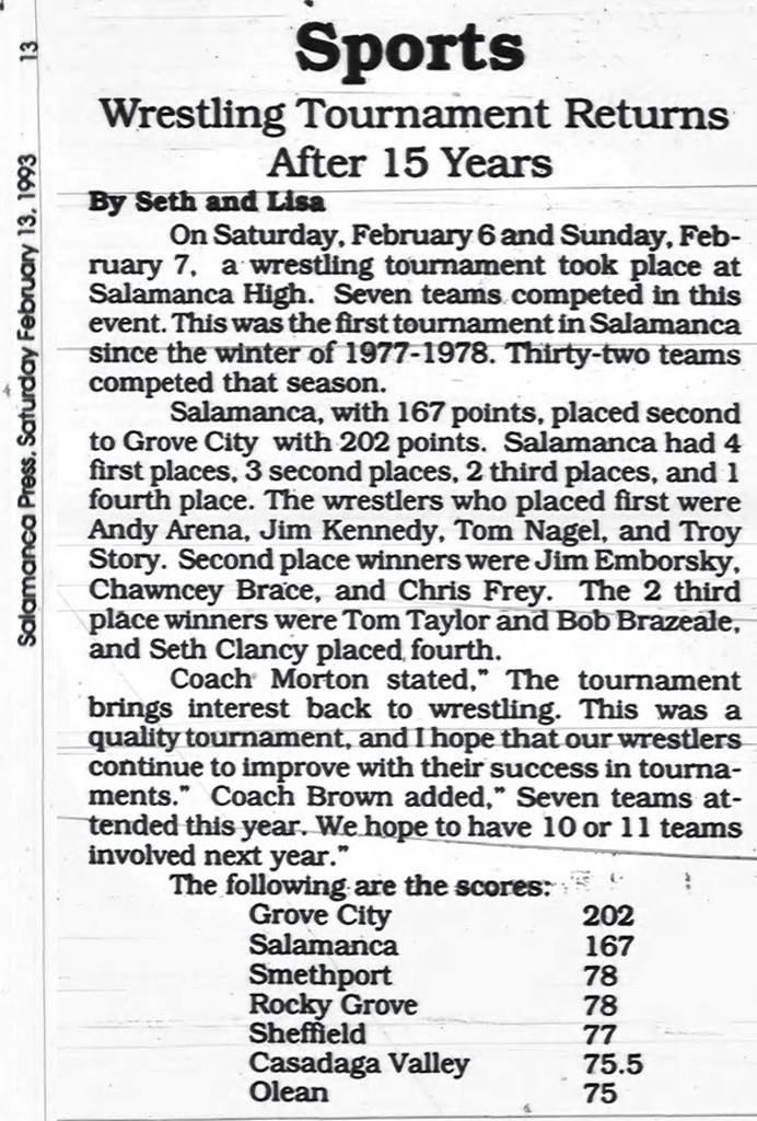 10th Annual Salamanca Invitational Wrestling Tournament