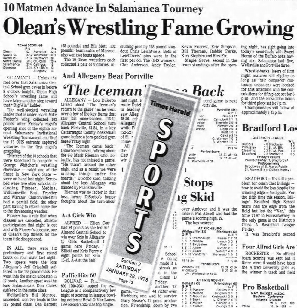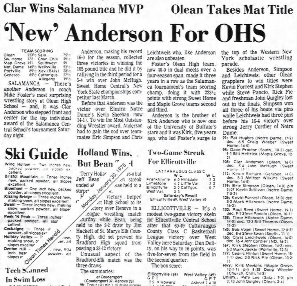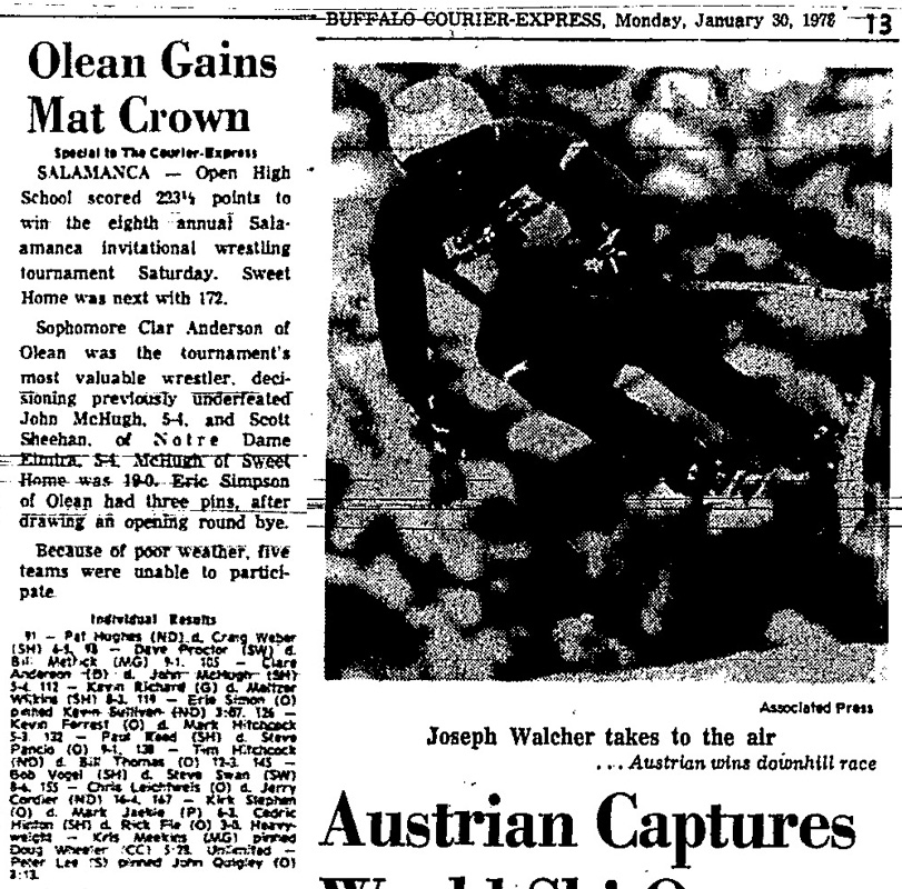 Kirk Stephen (Olean) > Mark Jaekle (Portville) decision 6-3