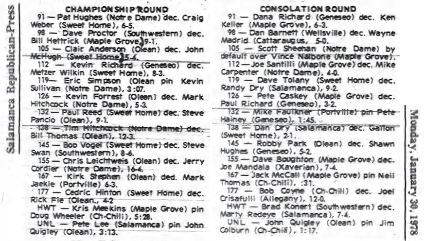 Peter Lee (Salamanca) > John Quigley (Olean) fall 3:13