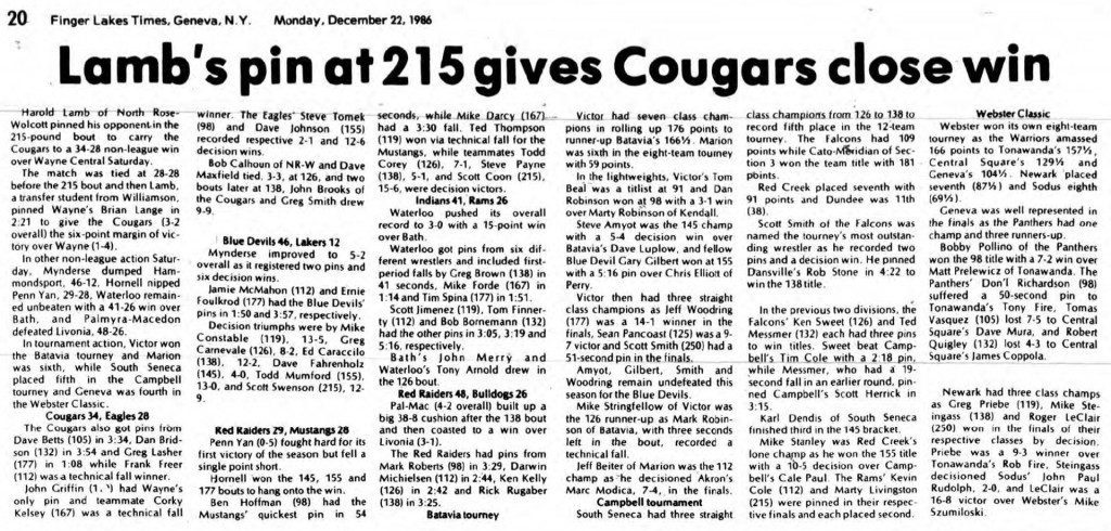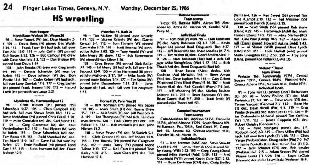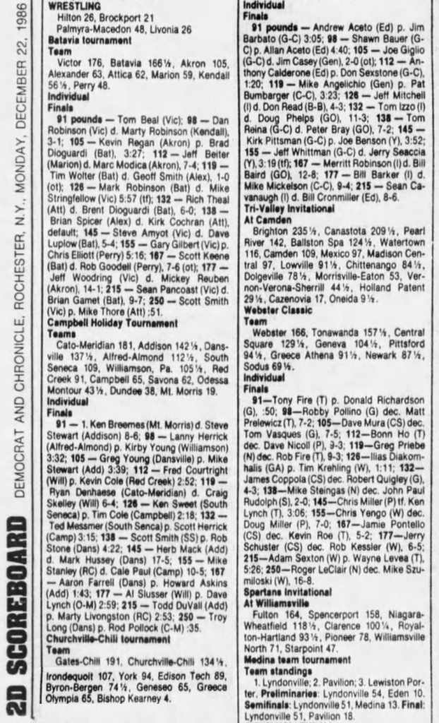 Herb Mack (Addison) > Mark Hussey (Dansville) major decision 17-5