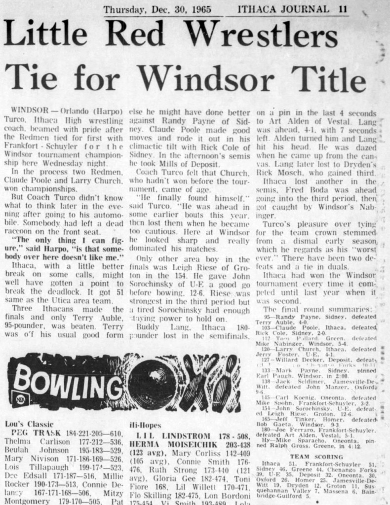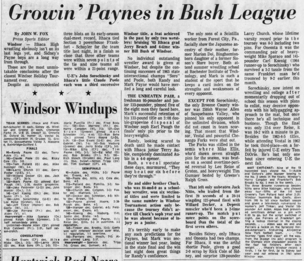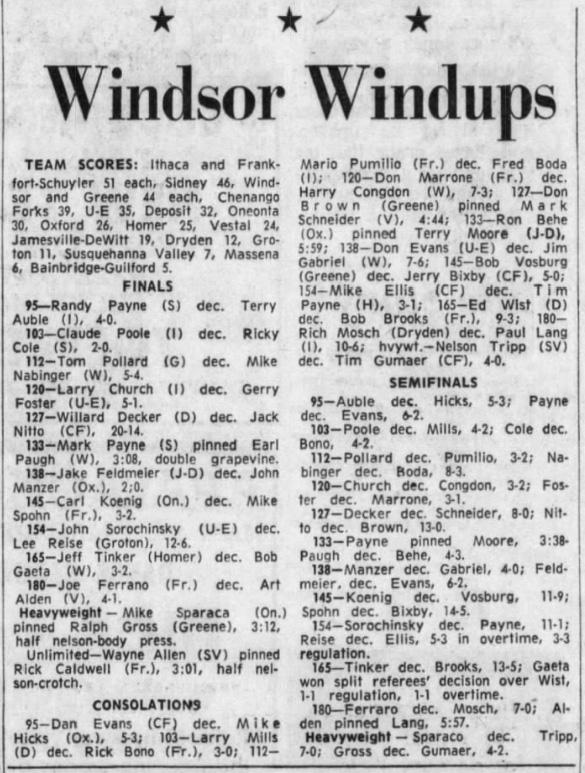 95 Randy Payne (Sidney) > Terry Auble (Ithaca) decision 4-0