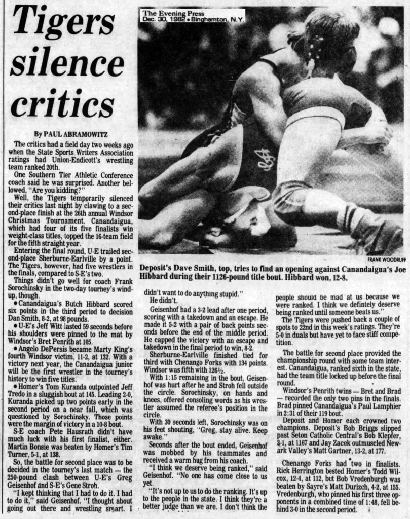 Joe Hibbard (Canandaigua) > Dave Smith (Deposit) decision 12-5
