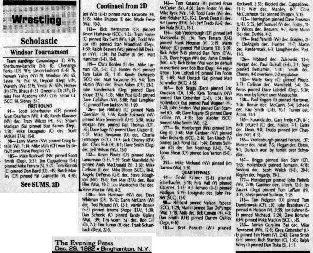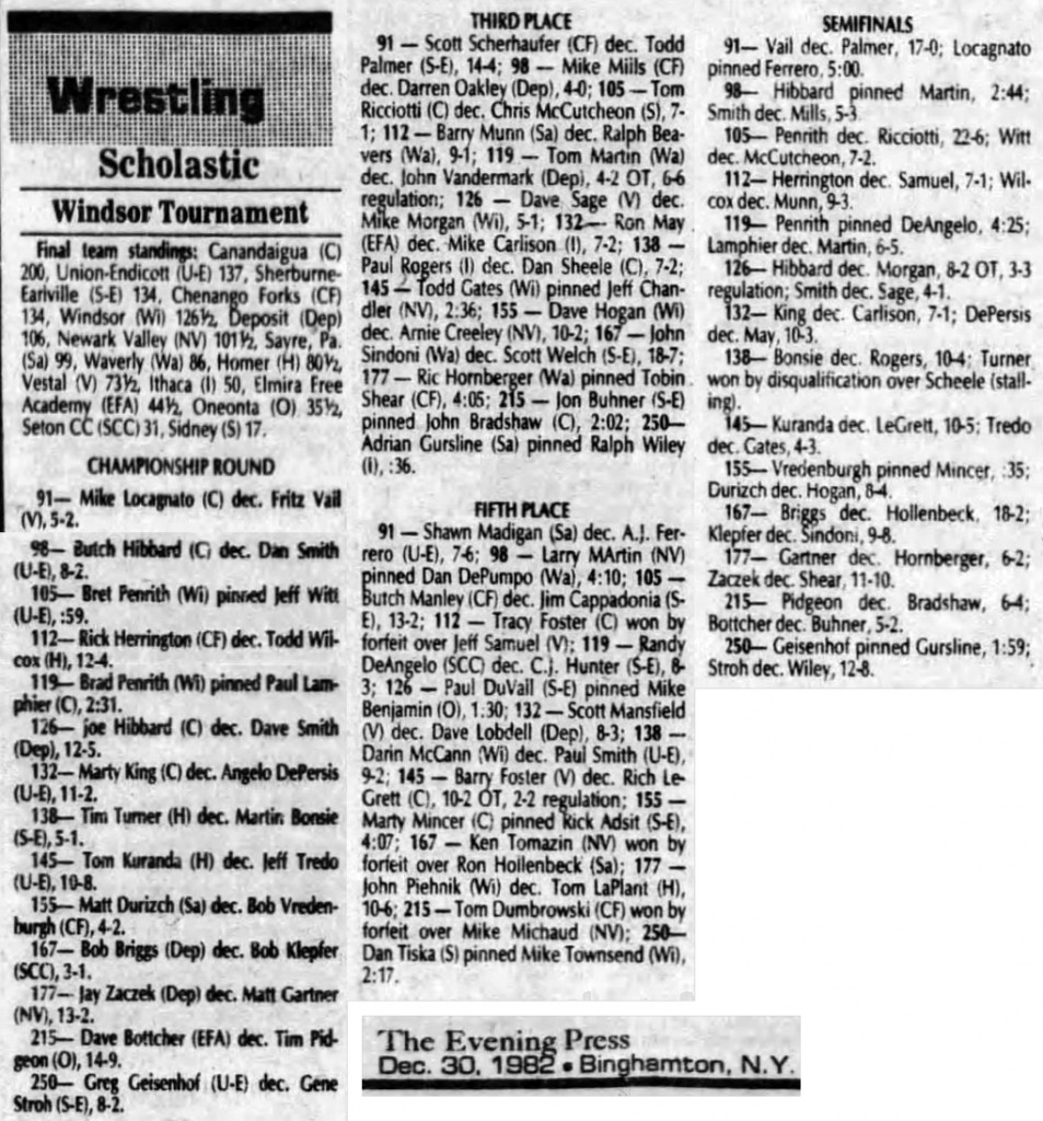 Brad Penrith (Windsor) > Paul Lamphier (Canandaigua) fall 2:31