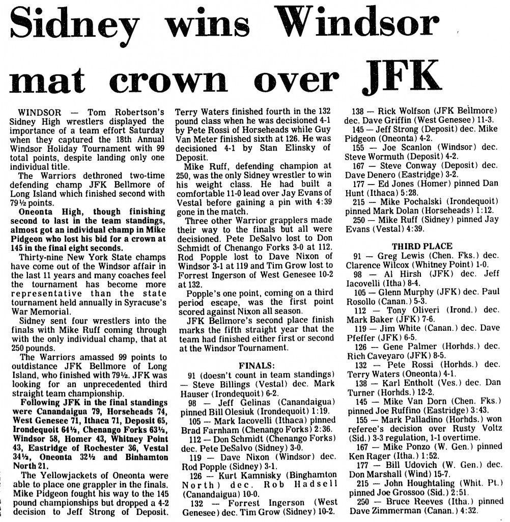 Mike Ruff (Sidney) > Jay Evans (Vestal) fall 4:28
