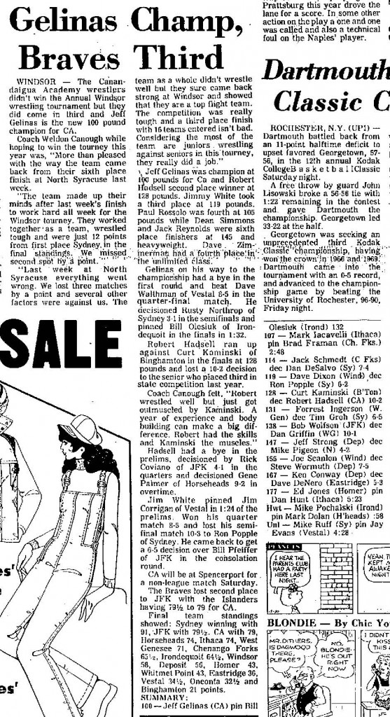 Kurt Kaminsky (BN) > Robert Hadsell (Canandaigua) major decision 10-0