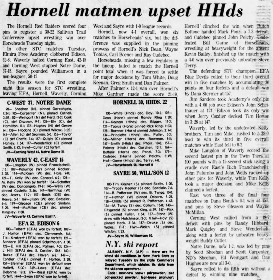 Dan Palmer (Horseheads) > Mike Gardner (Hornell) decision 12-1
