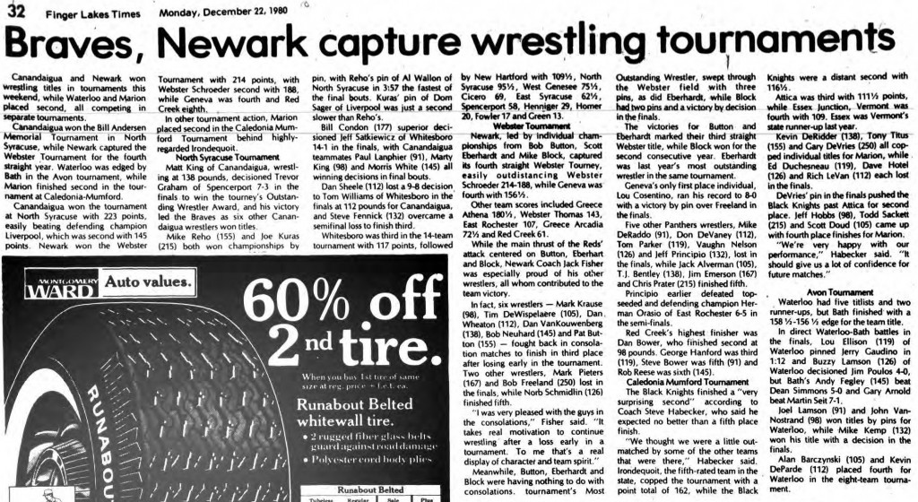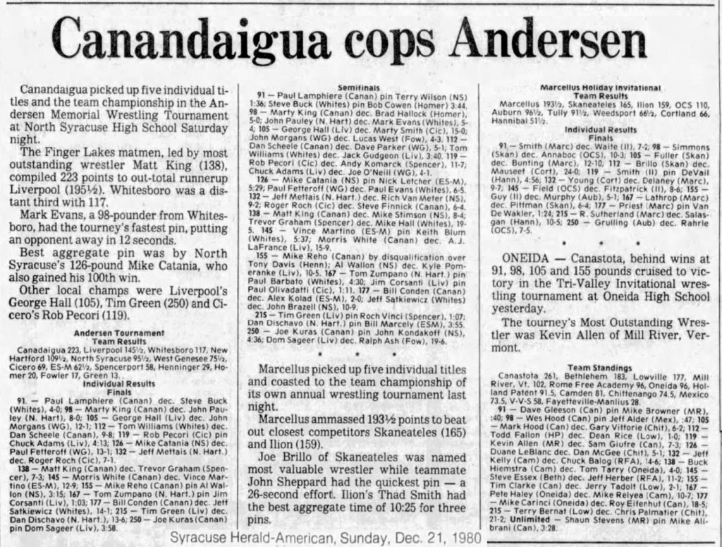 91 Paul Lamphier (Canandaigua) > Steve Buck (Whitesboro) decision 4-0