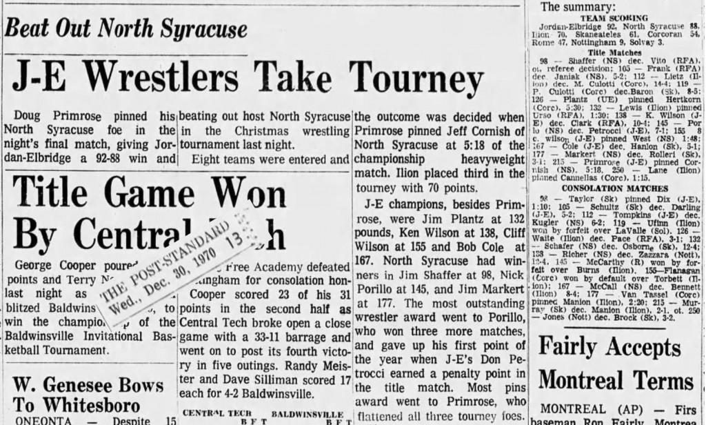 Jordan-Elbridge [NY] 92, North Syracuse [NY] 88, Ilion [NY] 70, Skaneateles [NY] 61, Corcoran [NY] 54, Rome [NY] 47, Nottingham [NY] 9, Solvay [NY] 3