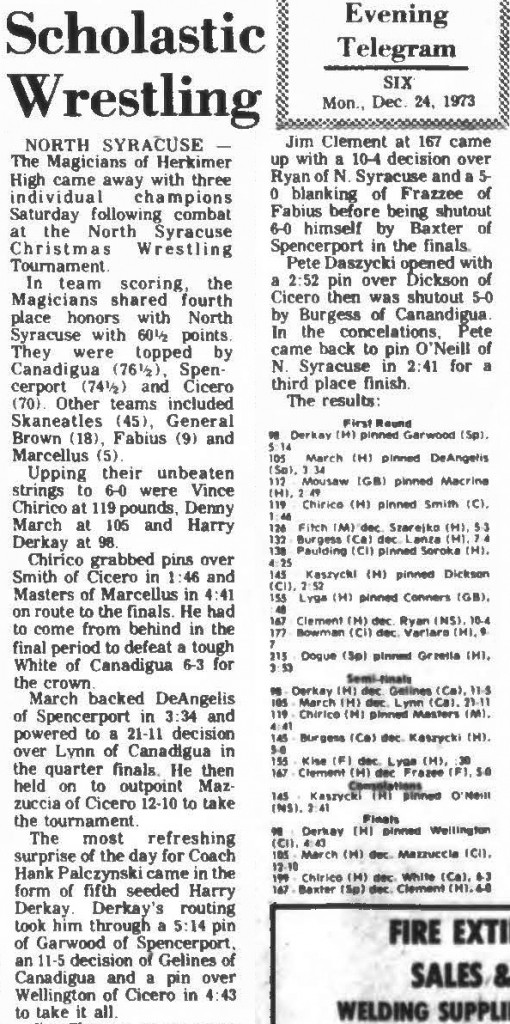 Vince Chirico (Herkimer) > Jim White (Canandaigua) decision 6-3