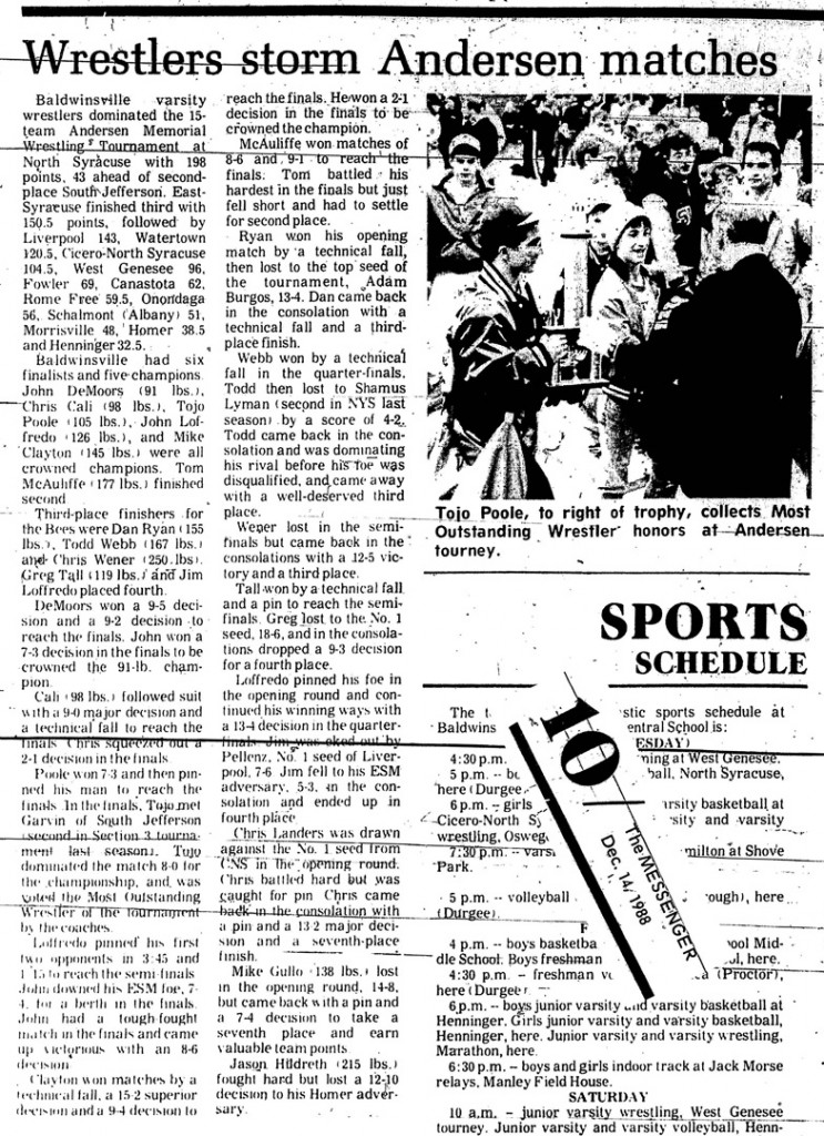 Tojo Poole (Baldwinsville) > Isaac Garvin (SJ) major decision 8-0