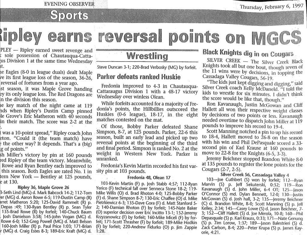 140 Chuck Baum (Ripley) > Josh Danielson (MG) fall 3:58