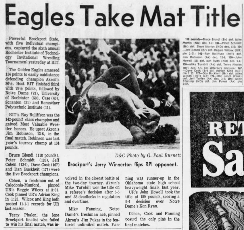 Jeff Cohen (Brockport) > Reggie Wilcox (UR) fall 3:01
