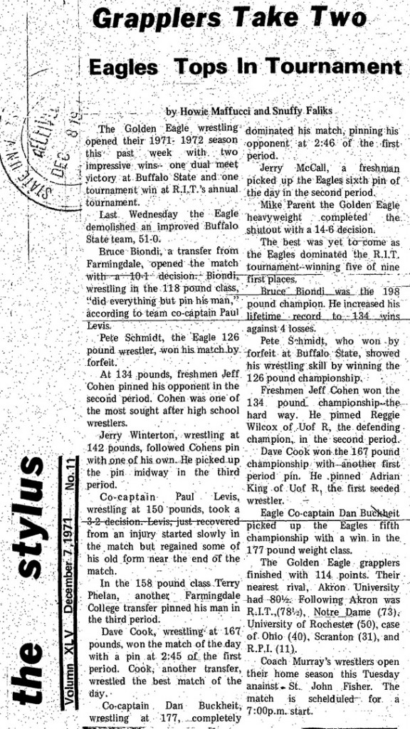 Dan Buckheit (Brockport) > Mike Wilson (RIT) decision 14-9