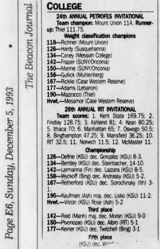 Brian Vitron (KSU) > Mark Rose (AU) decision 5-2
