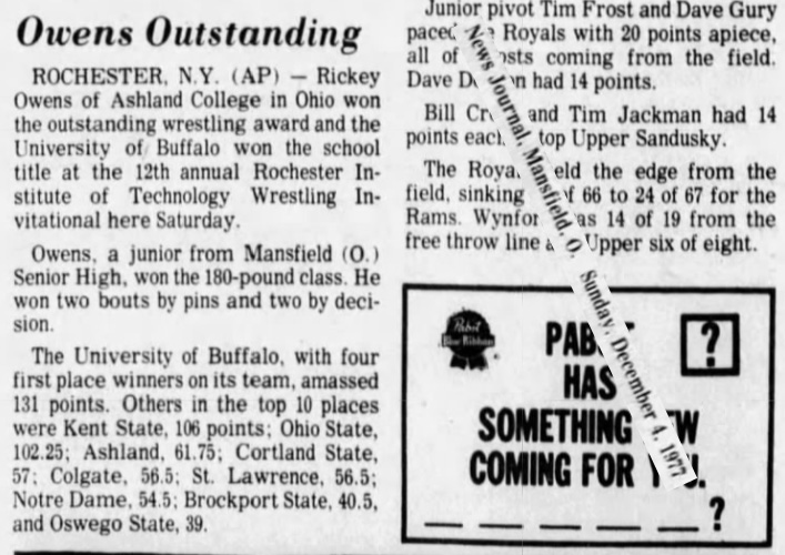 Paul Corley (Oswego) > Mike Padden (UND) decision 10-7