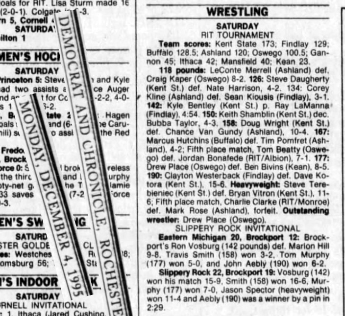 Tom Beatty (Oswego) > Jordan Bonafede (RIT) decision 7-1