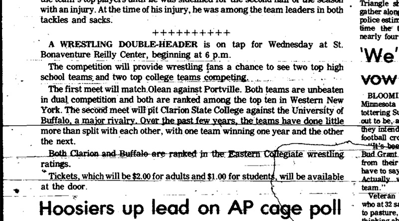 John Clark (Portville) > Tom Bushnell (Olean) decision 2-1