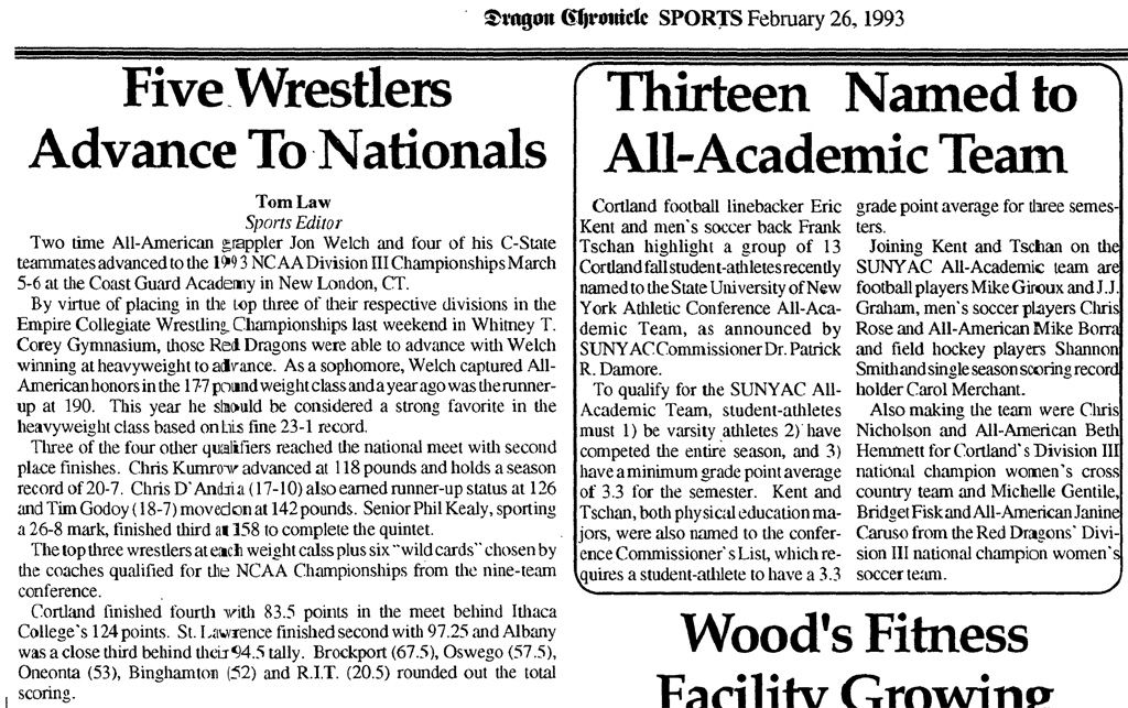 Jon Welch (Cortland) > Matt Ladka (Oswego) decision 15-8