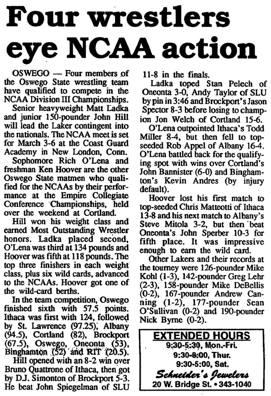 Ken Hoover (Oswego) > Jon Sperber (Oneonta) decision 10-3