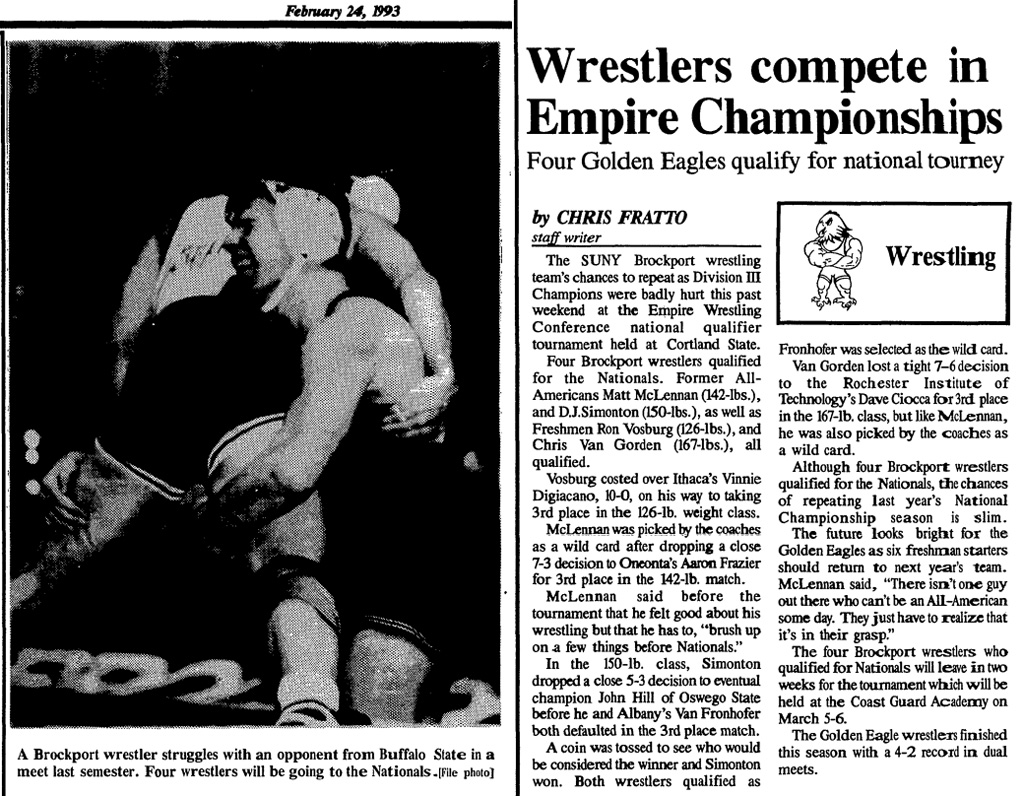 David Ciocca (RIT) > Chris Van Gorden (Brockport) decision 7-6