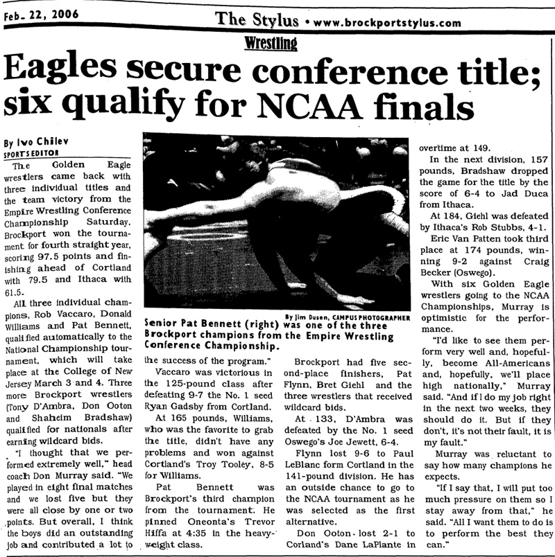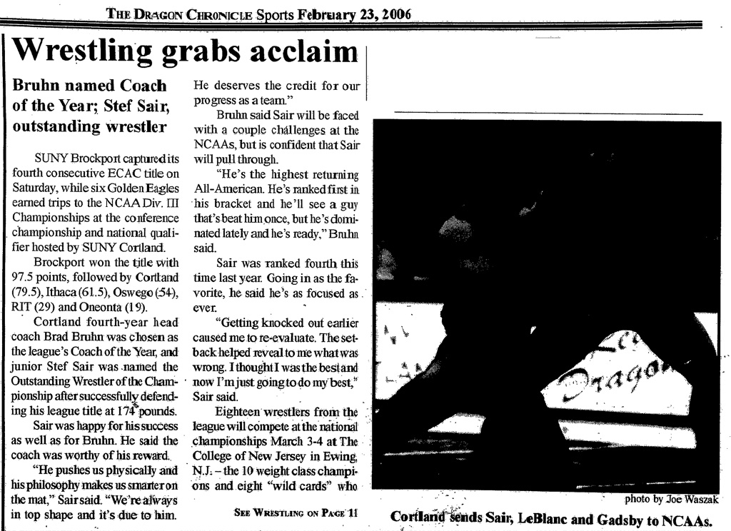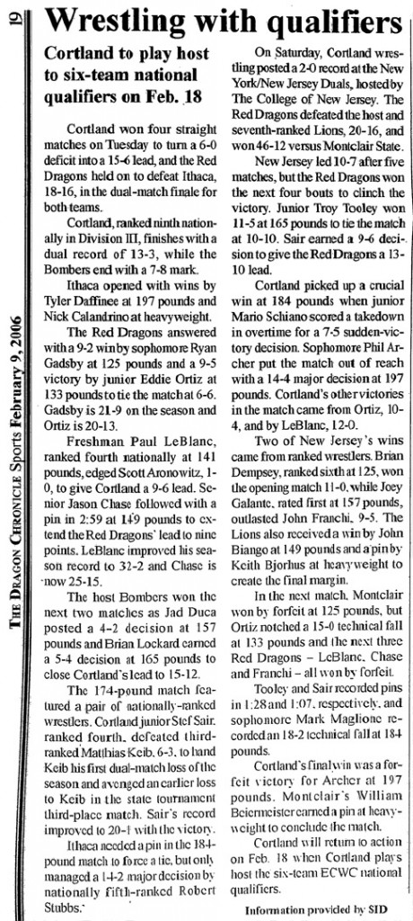 Paul Leblanc (Cortland) > Pat Flynn (Brockport) major decision 8-0