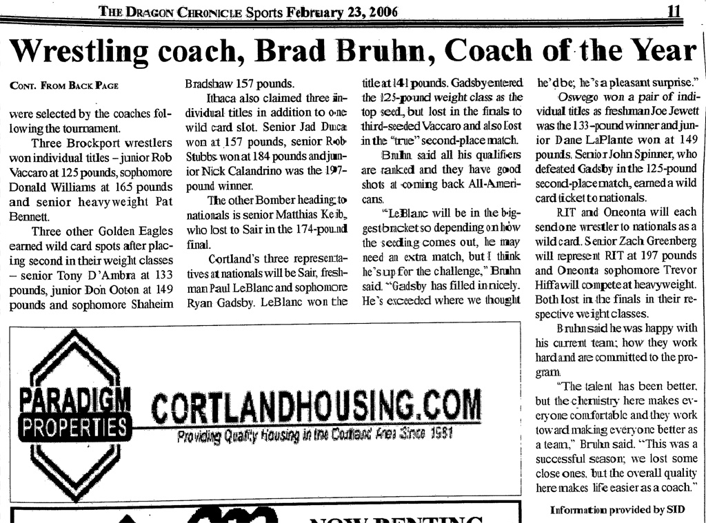 Rob Vaccaro (Brockport) > Ryan Gadsby (Cortland) decision 9-7