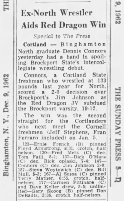 Ernie French (Brockport) > Floyd Armstrong (Cortland (JV)) fall 8:31