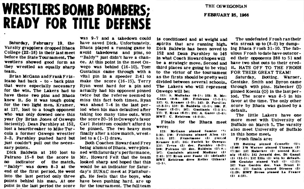 Bob Franciamone (IC) > Bob Kramer (Oswego) fall 4:47