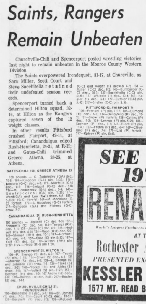 Bruce Hadsell (Canandaigua) > Bob Siragusa (RH) decision 6-0