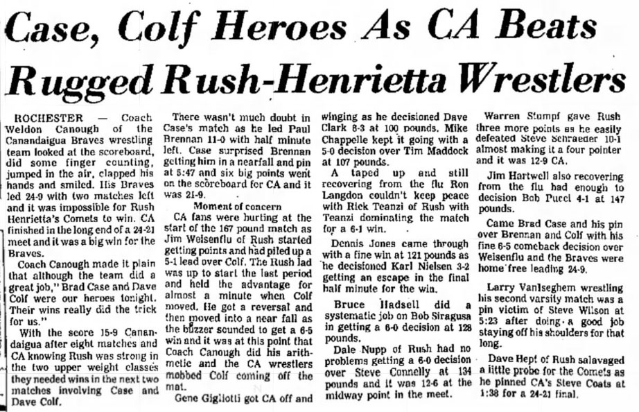 Dale Nupp (RH) > Steve Connelly (Canandaigua) decision 12-6