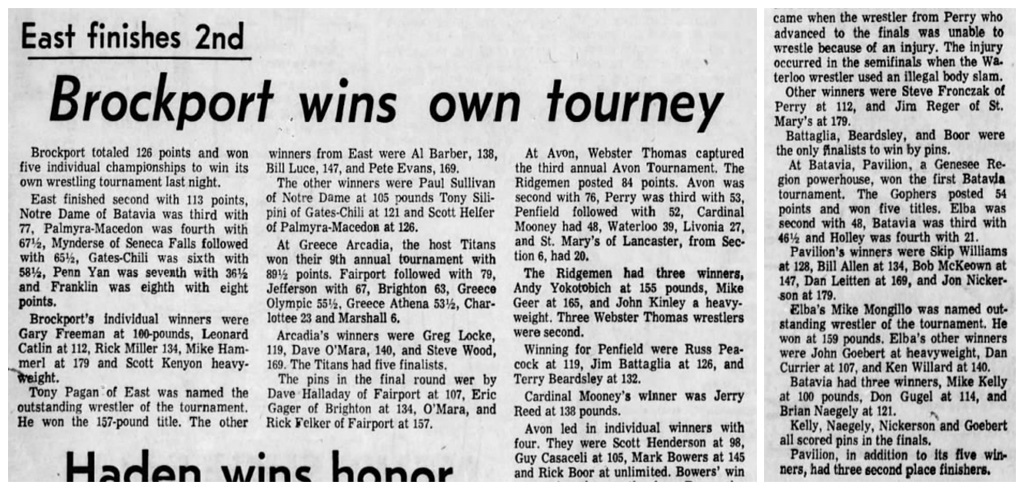 215 John Goebert (Elba) > Rick Catlin (Holley) fall 3:27