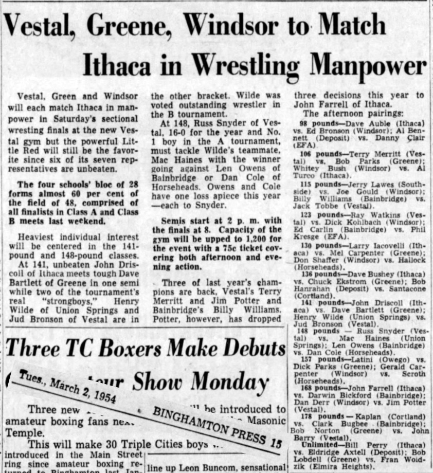 Ed Carlin (Bainbridge) > Ray Watkins (Vestal) decision 9-2