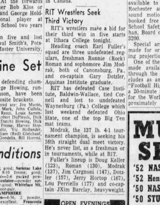 147 Jim Cargnoni (RIT) > Don Bills (IC) decision 6-1