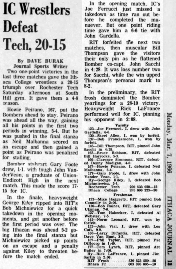 145 Bill Thompson (RIT) > John Sacchi (IC) fall 4:28