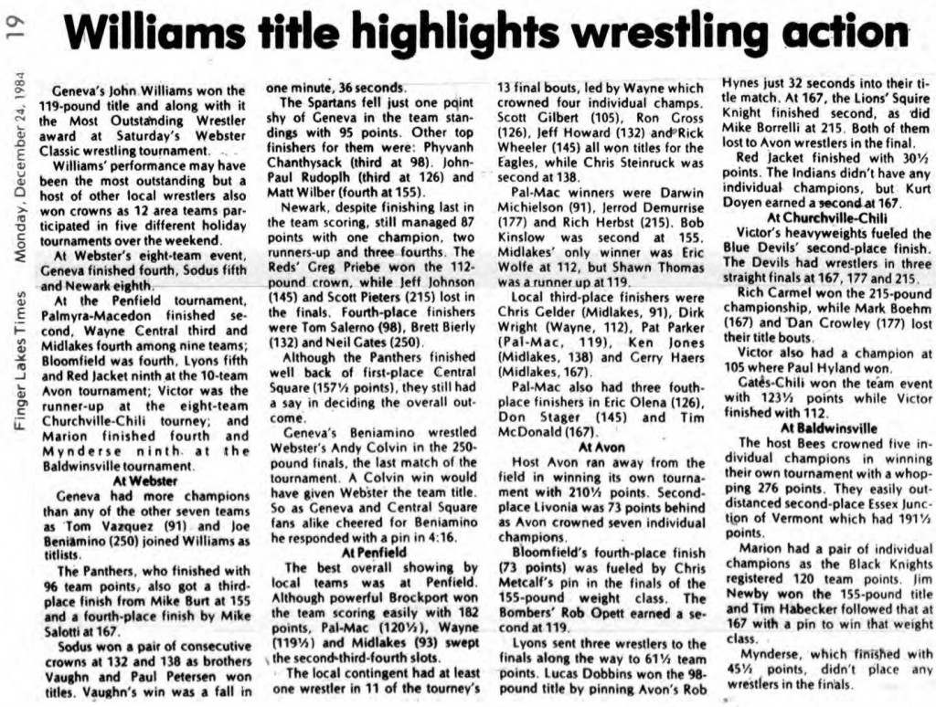 Rich Carmel (Victor) > Shawn Wegener (York) decision 16-12