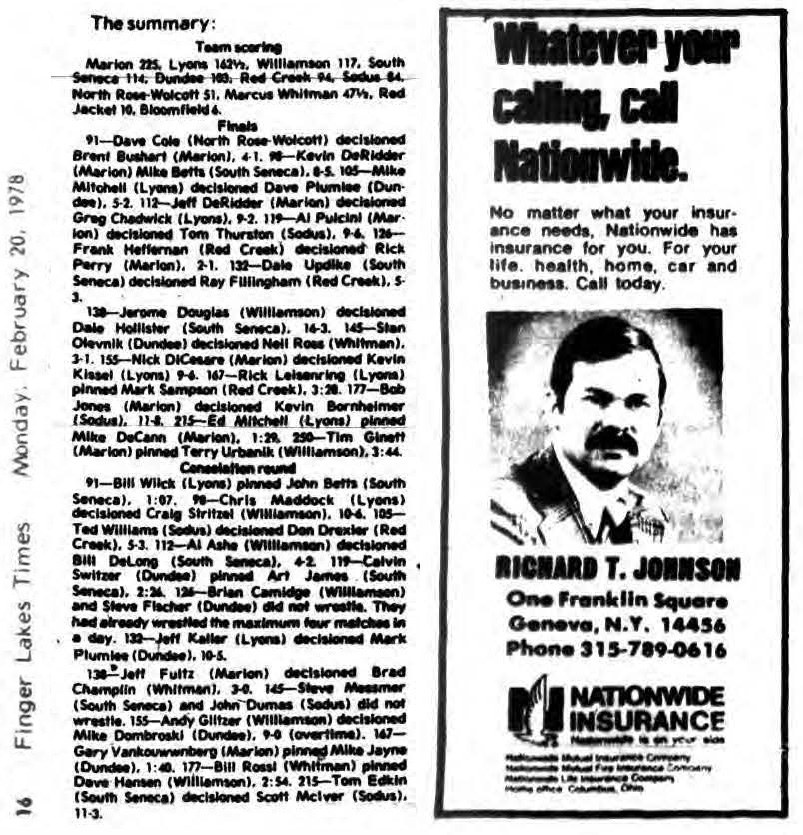 119 Al Pulcini (Marion) > Tom Thurston (Sodus) decision 9-6