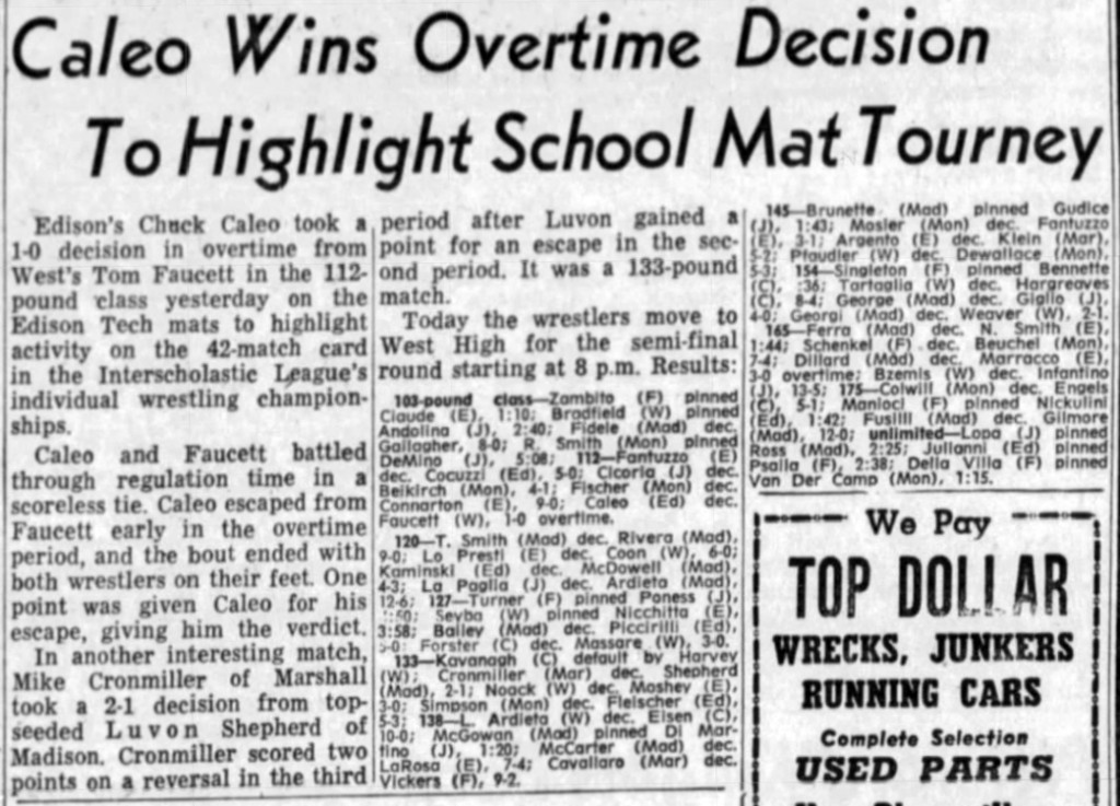 Sal Bentivegna (MR) > Mike Lopa (JR) decision 3-2