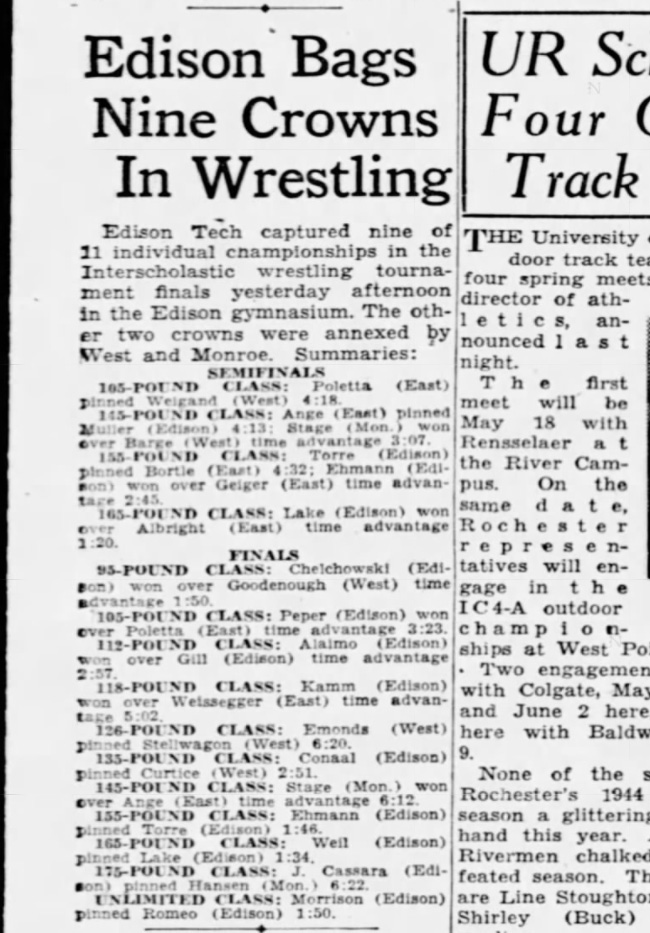 15th Annual Rochester Interscholastic League Wrestling Championships