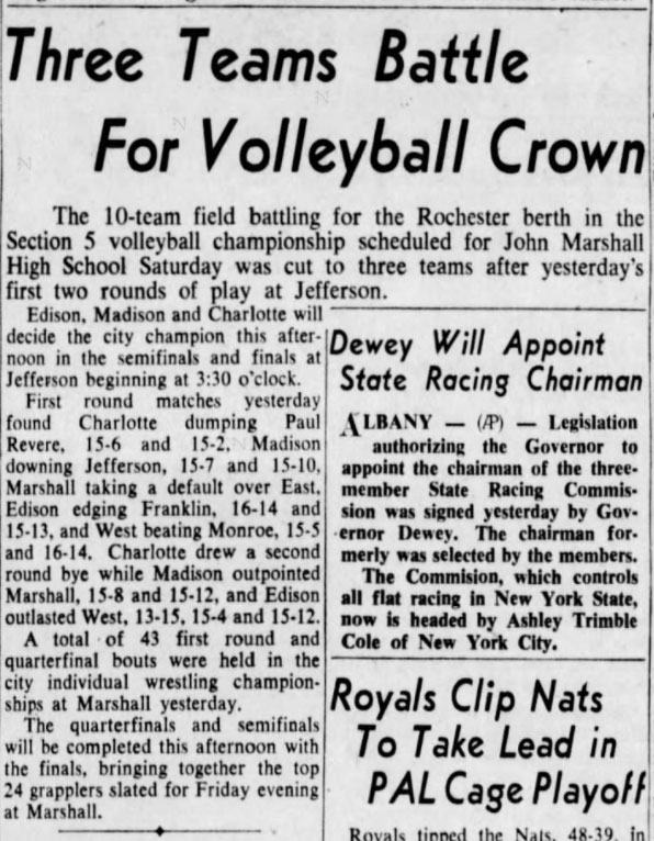 Charlotte (Rochester) [NY] 4, East High (Rochester) [NY] 3, Franklin (Rochester) [NY] 2, Madison (Rochester) [NY] 2, Marshall (Rochester) [NY] 1,