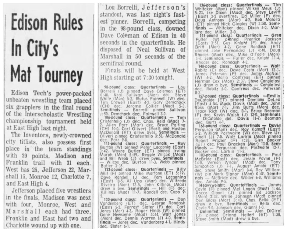 38th Annual Rochester Interscholastic League Wrestling Championships
