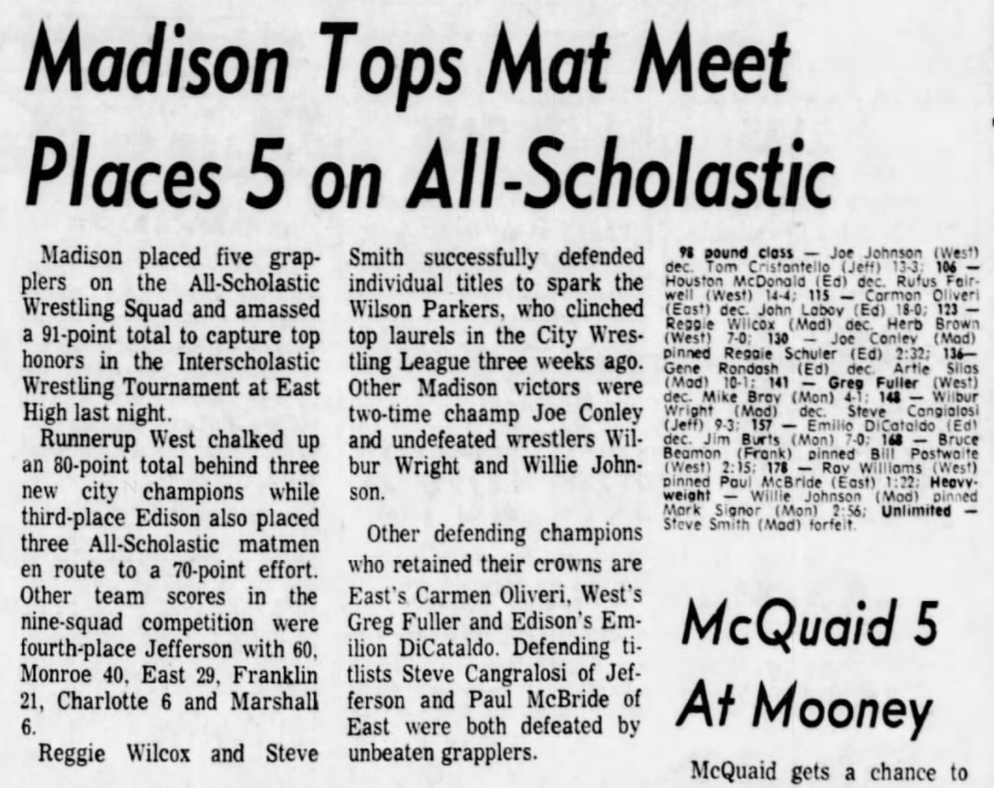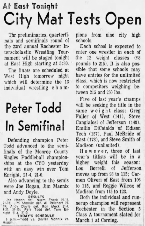 39th Annual Rochester Interscholastic League Wrestling Championships