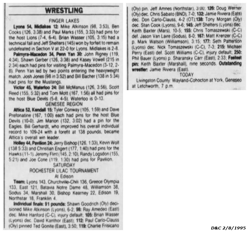 Chris Tomaszewski (CC) > Jason VanLare (Sodus) major decision 8-0