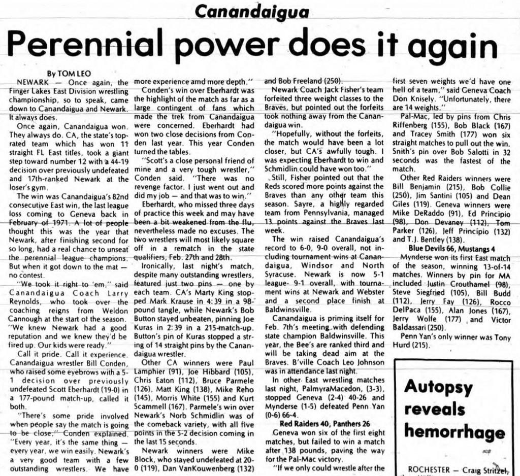 | 1974: | Canandaigua vs. Newark |