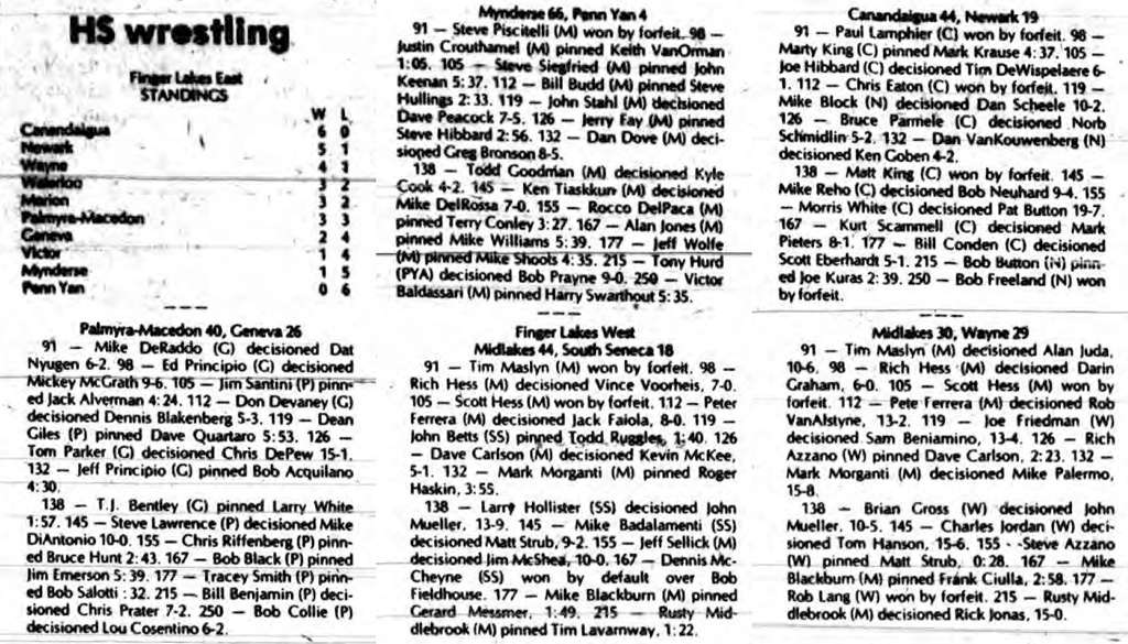 Joe Hibbard (Canandaigua) > Tim DeWispelaere (Newark) decision 6-1