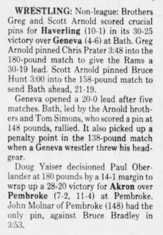 Scott Arnold (BH) > Bruce Hunt (Geneva) fall 3:00