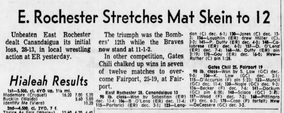 Dick O'Lena (ER) > Cliff Blair (Canandaigua) decision 7-4