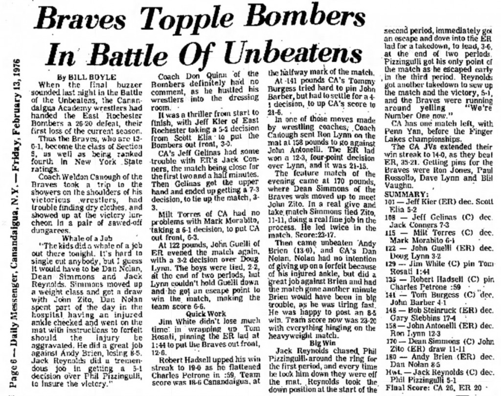 Andy Brien (ER) > Dan Nolan (Canandaigua) decision 8-5