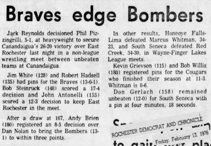 Jim White (Canandaigua) > Tom Rosati (ER) fall 1:44