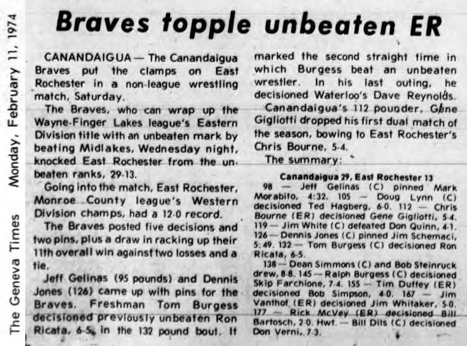 Ralph Burgess (Canandaigua) > Skip Farchione (ER) decision 7-4