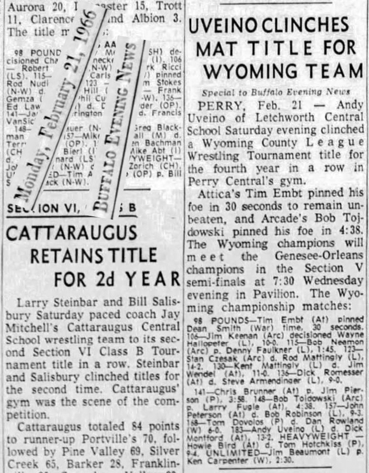 Chris Brunner (Attica) > Jim Pierson (Perry) fall 3:58